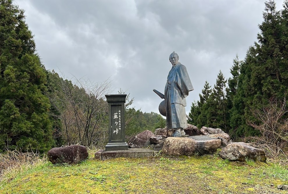 | [言い伝え・概要] | 文久二年(1863年)、脱藩を決意した坂本龍馬は高知県梼原町に泊まり、三月二十六日未明、現在の愛媛県との境にある韮ヶ峠(にらがとうげ)に立ち雲海を眺め脱藩の第一歩を踏み出した。