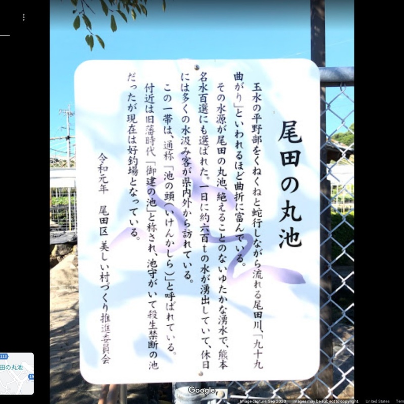 【尾田の丸池】(熊本県の湧水・平成の名水百選)玉名市天水町尾田 九十九に曲がりくねった尾田川に注ぐ名水水源 [湧水の名称] 尾田の丸池(おたのまるいけ) [場所] 熊本県玉名市天水町尾田 [言い伝え・概要] 熊本名水百選の一つであり、平成の名水百選に「金峰山湧水群」のひとつとして選定されています。 九十九曲がりの尾田川の水源で、尾田地区の人には昔から生活の場、憩いの場として親しまれています。 [保全活動] 市では、尾田の丸池周辺を公園化しており、地元尾田区の住民により湧水池周辺の清掃、草刈りを実施している。 [Google クチコミ] こちら 出典 環境省ホームページ お気に入りに追加※自然の湧水は煮沸して飲用されるとより安全です。※水辺は水難や危険生物に十分気を付けてください。 Click to share on X (新しいウィンドウで開きます) X このエントリーをLINEで送る (新しいウィンドウで開きます) LINEに送る Facebook で共有するにはクリックしてください (新しいウィンドウで開きます) Facebook このエントリーをはてなブックマークに追加 (新しいウィンドウで開きます) はてなブックマーク (名水・名勝)平成の名水百選 熊本県 | 九州 | 玉名市 投稿日: 2021年3月20日2023年6月17日 投稿者: Sumai事務局