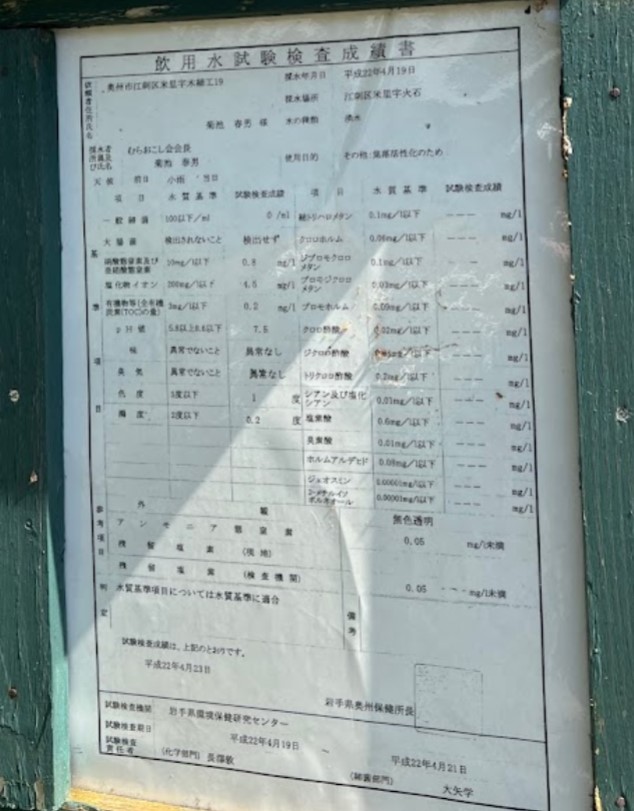 【金山水】(岩手県の湧水)奥州市江刺米里 県道沿いの伝統的古民家横にある 冷たくて美味しい水 [名称] 金山水 [場所] 岩手県奥州市江刺米里 [言い伝え・概要] 県道8号線沿いの伝統的古民家がある個人敷地内の湧水。 地域活性化のために開放されている。 湧水前には、車を横付けできるスペースがないため水汲みには工夫が必要。 [保全活動] [Google クチコミ] こちら お気に入りに追加※自然の湧水は煮沸して飲用されるとより安全です。※水辺は水難や危険生物に十分気を付けてください。 Click to share on X (新しいウィンドウで開きます) X このエントリーをLINEで送る (新しいウィンドウで開きます) LINEに送る Facebook で共有するにはクリックしてください (新しいウィンドウで開きます) Facebook このエントリーをはてなブックマークに追加 (新しいウィンドウで開きます) はてなブックマーク 東北 | 岩手県 | 奥州市 投稿日: 2024年3月22日 投稿者: Sumai事務局