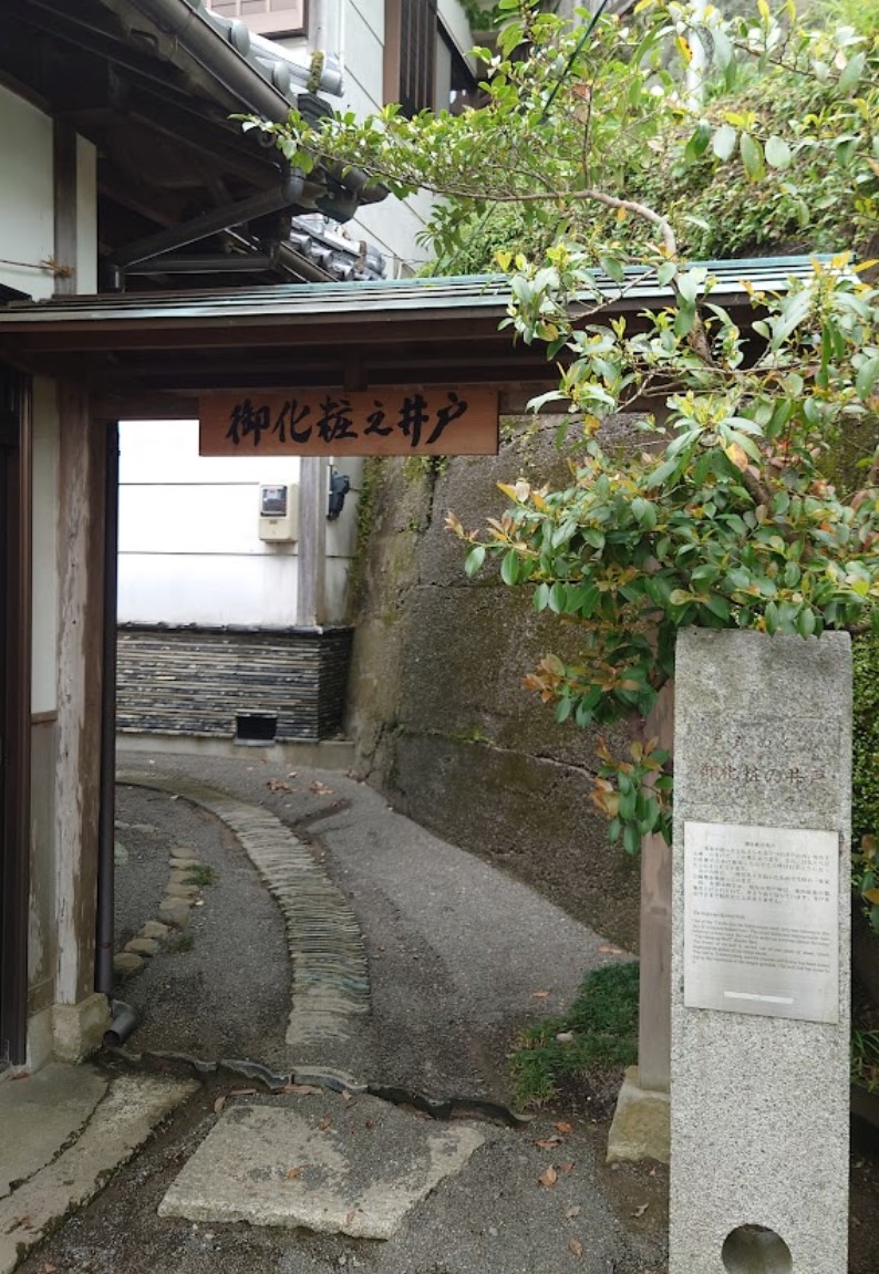 女官、侍女たちが御化粧のために使用したのでこう呼ばれるようになったと伝えられている。 井戸の枠は、一枚岩をくり抜いたもので当時の一条家の権勢を物語っている。 水深は約5m、現在の井戸枠は、境内拡張の際築き上げられていて、昔より高くなっている。 井戸水は今日まで涸れたことがない。 (掲示板要約) |