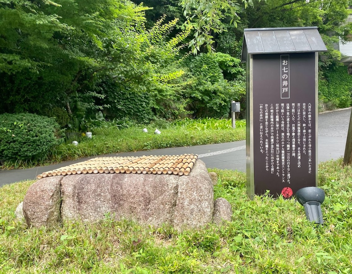 【お七の井戸】(東京都の水場)目黒区下目黒1丁目 ぼやで火刑に処された八百屋お七の菩提を弔うため 出家した恋人が水行を行った井戸 [名称] お七の井戸 [場所] 東京都目黒区下目黒1丁目8 [言い伝え・概要] 江戸時代、八百屋の娘お七が恋こがれた寺小姓吉三あいたさに自宅に放火し、鈴ヶ森で火刑にされた。 吉三はその後僧侶となって名を西運と改め明王院に入った。 この明王院境内の井戸でお七の菩提を念じながら水垢離(水行)を行ったことから「お七の井戸」と言い伝えられている。 ぼやで身を焼く八百屋お七(東京消防庁) [保全活動] [Google クチコミ] こちら お気に入りに追加※自然の湧水は煮沸して飲用されるとより安全です。※水辺は水難や危険生物に十分気を付けてください。 Click to share on X (新しいウィンドウで開きます) X このエントリーをLINEで送る (新しいウィンドウで開きます) LINEに送る Facebook で共有するにはクリックしてください (新しいウィンドウで開きます) Facebook このエントリーをはてなブックマークに追加 (新しいウィンドウで開きます) はてなブックマーク (場所)井戸 関東 | 東京都 | 目黒区 投稿日: 2024年7月26日2024年7月26日 投稿者: Sumai事務局