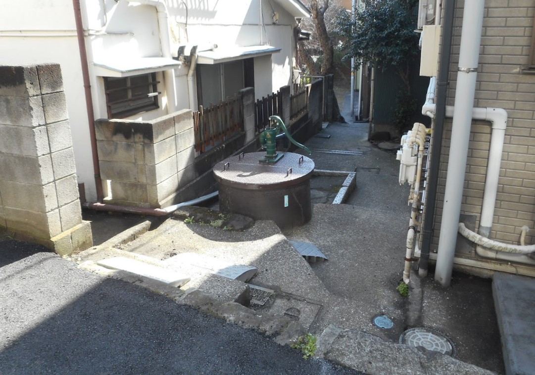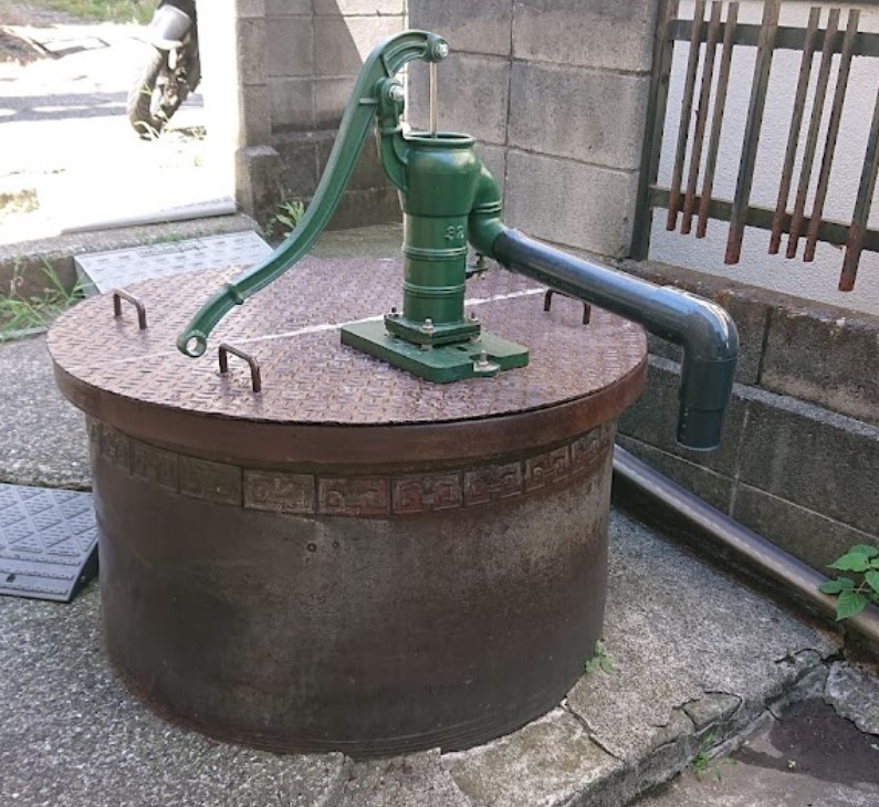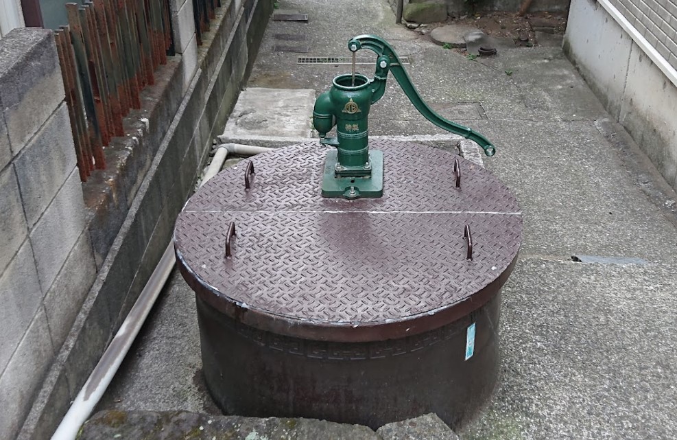 【浦島太郎の足洗井戸】(神奈川県の水場)横浜市神奈川区子安通1丁目 浦島太郎伝説の残る港町の住宅街にある 手押しポンプ式井戸