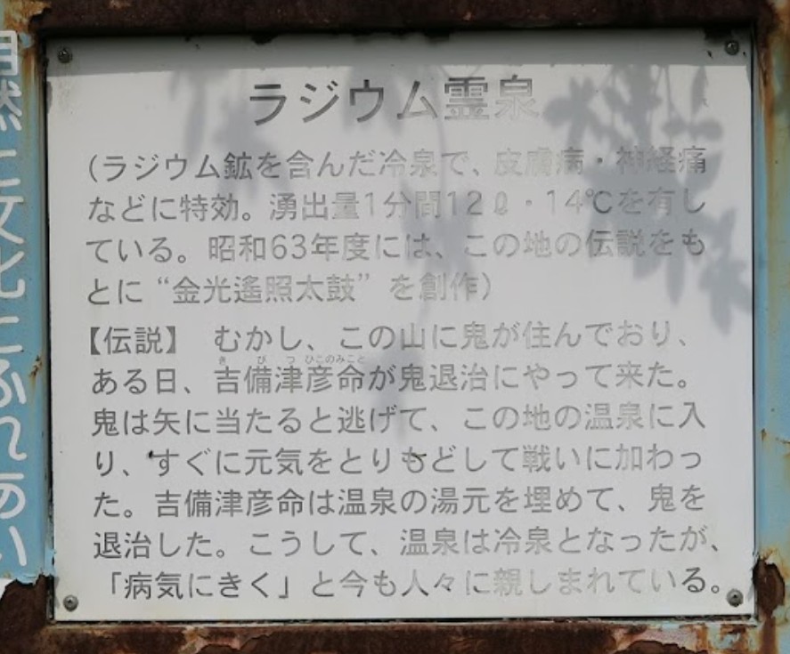 | [言い伝え・概要] | ラジウム鉱を含んだ冷泉で、皮膚病・神経痛などに特効。
