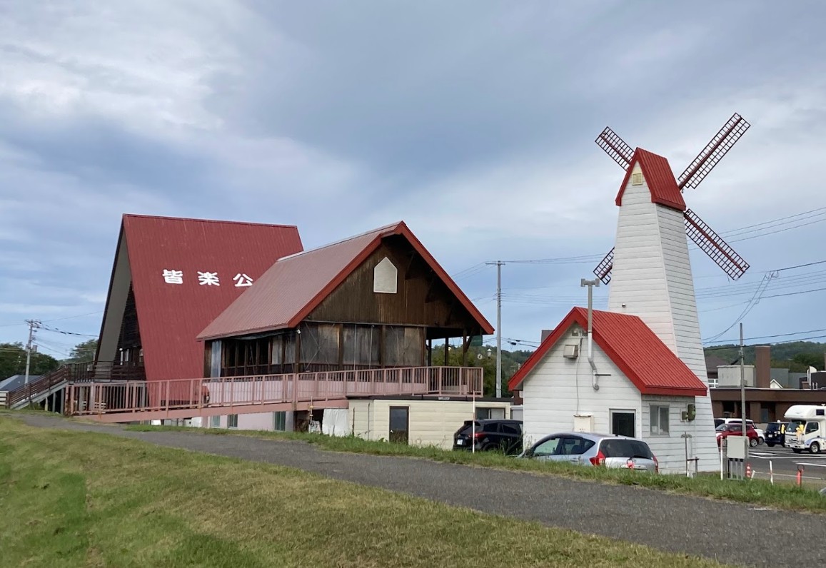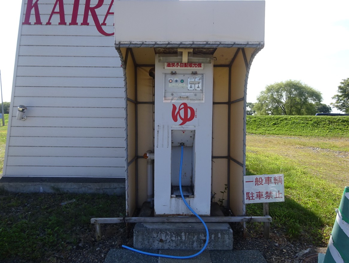 【月形温泉自動販売機】(北海道の水汲み場)樺戸郡月形町北農場 神経痛・関節痛・冷え症に効く 偕楽公園内の風車が目印の温泉スタンド 18リットル10円