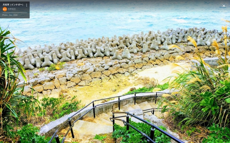 【犬名河(インナガー)】(沖縄県の湧水)うるま市与那城伊計 海沿いの石段を登った所にある 犬が教えてくれた湧水
