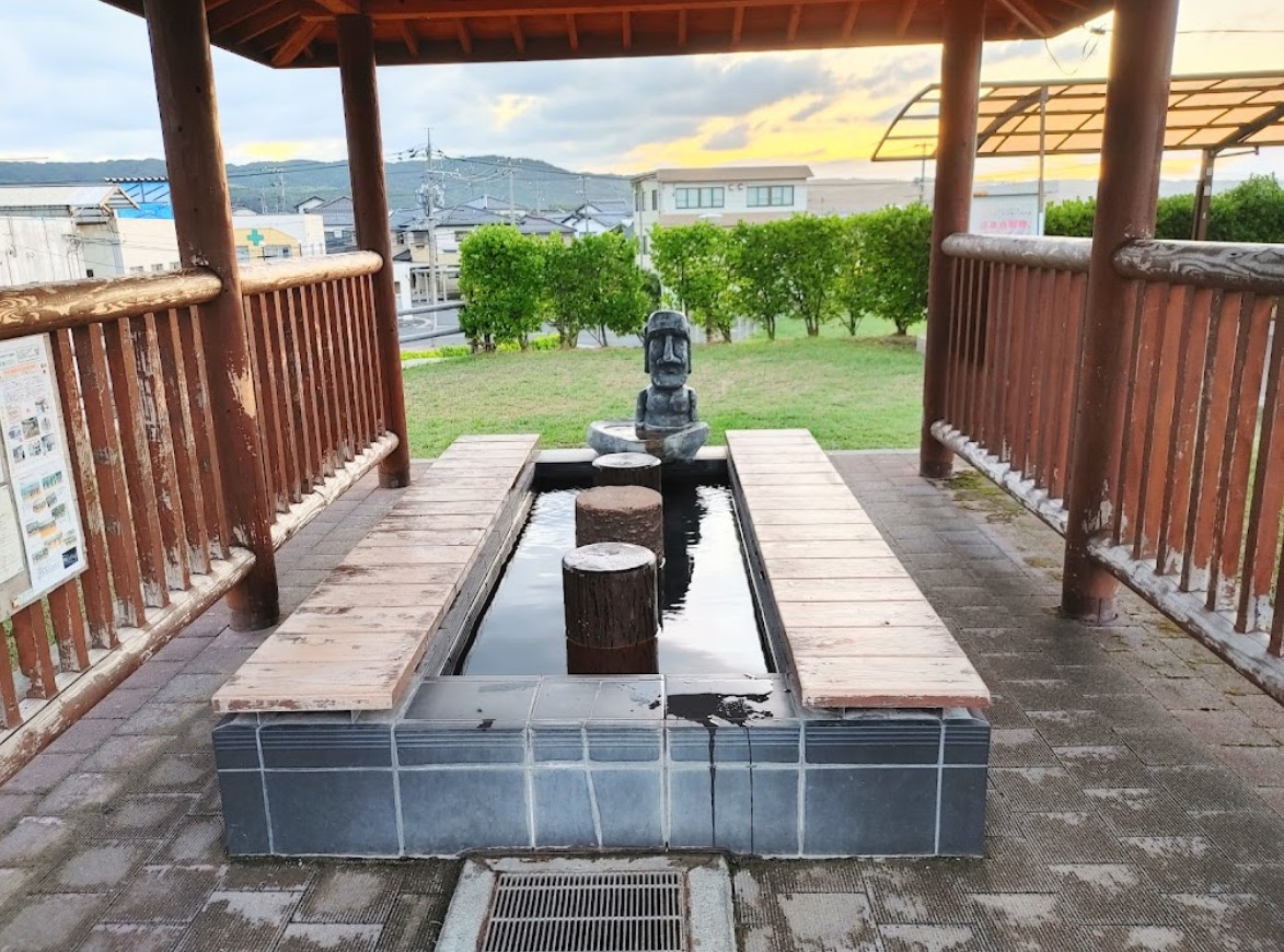 海や街並みを見渡せる立地で、温泉スタンドの隣にモアイ像が目印の足湯も設置されている。 「ヤサホー」とは、鳥取県の民謡『貝殻節』の中の掛け声で、イタヤ貝を捕る漁夫たちの歌った労働歌が元となっている。 浜村温泉は、豊富な湯量と五百年の歴史を誇つ。美しい白鷺が傷を癒したという言い伝えがあり、「鷺の湯」とも呼ばれる。 約110リットル 100円 泉質 硫酸塩線 泉温 55度 効能 リウマチ、神経痛、婦人病、胃腸病、皮膚病など |