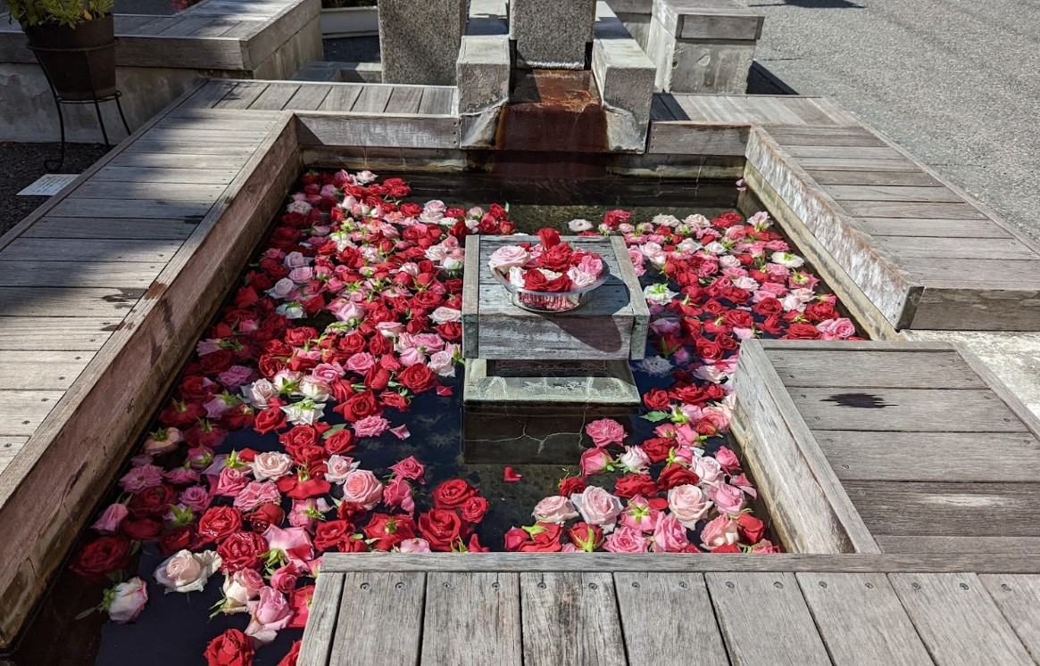 [言い伝え・概要] 温海(あつみ)温泉街の中心部、道路の真ん中に設けられた無料の足湯で、飲泉もできるようになっている。