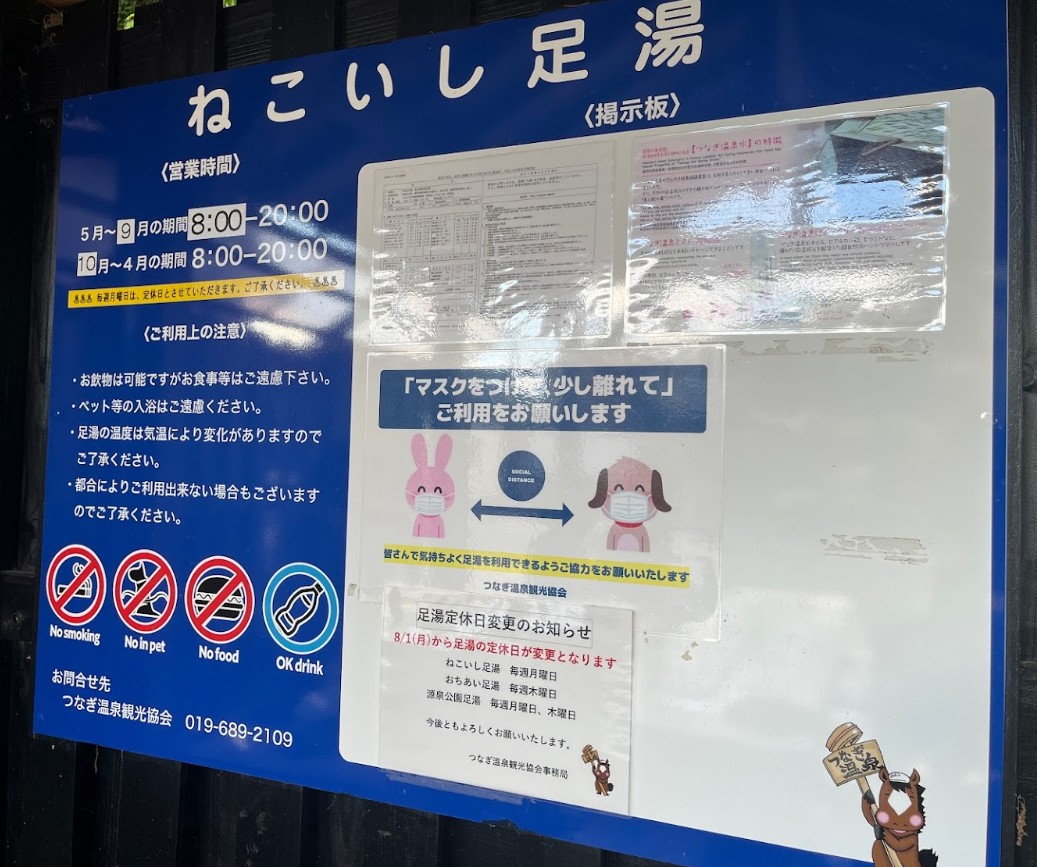【ねこいし足湯】(岩手県の水場)盛岡市繋舘市 ぬぐだまるぅ~ 天然保湿成分豊富なアルカリ性のつなぎ温泉・無料足湯①