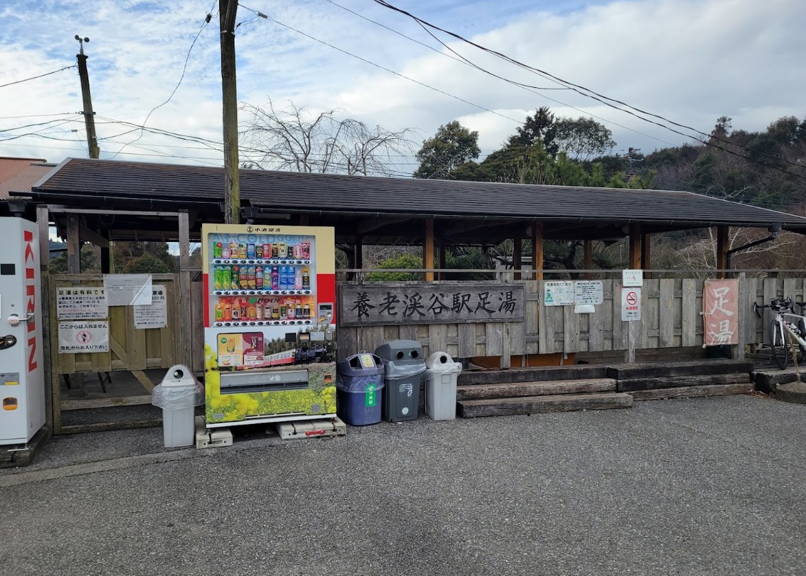 【養老渓谷駅足湯】(千葉県の水場)市原市朝生原 鉄道利用者の待ち時間等に利用される 駅に隣接した足湯施設