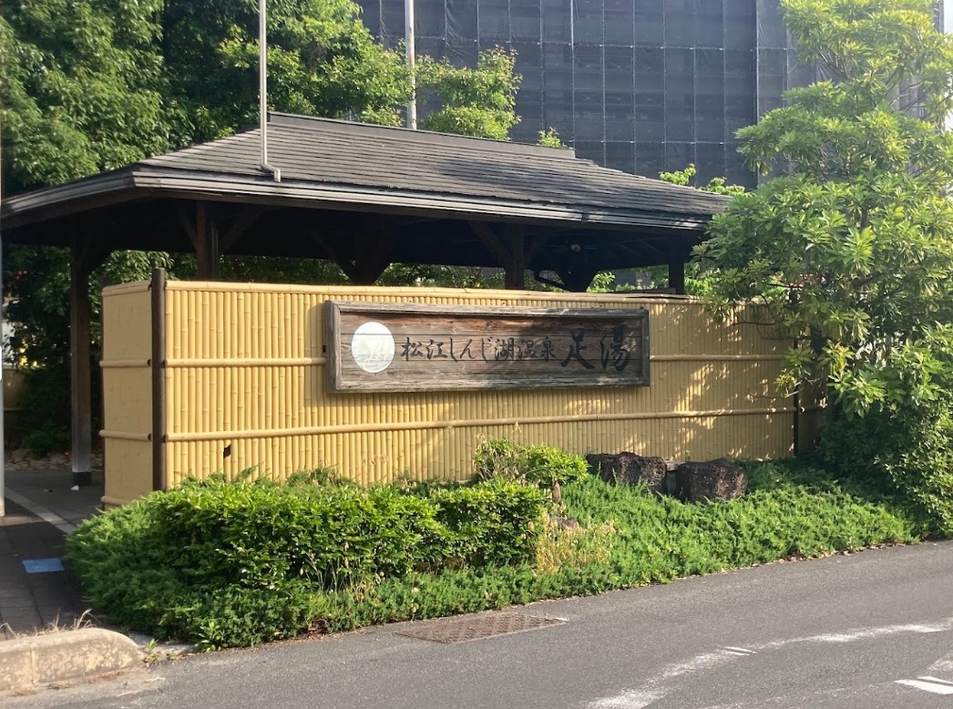 [言い伝え・概要] 松江しんじ湖温泉駅前にある、お地蔵様が安置された源泉かけ流しの足湯。