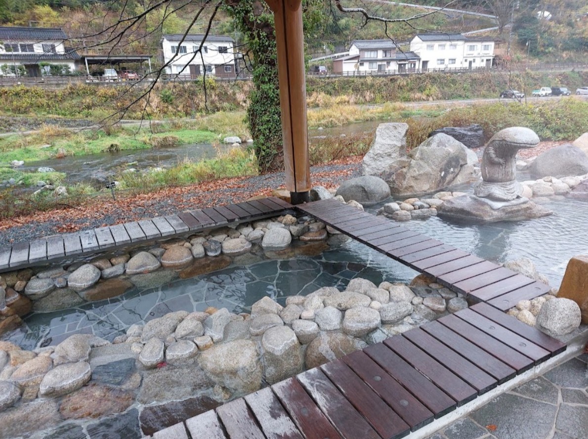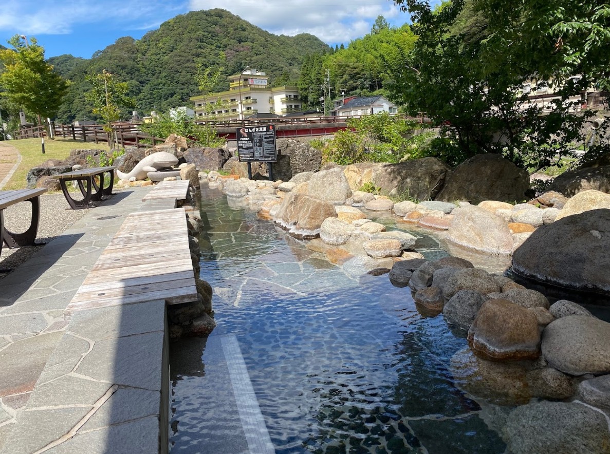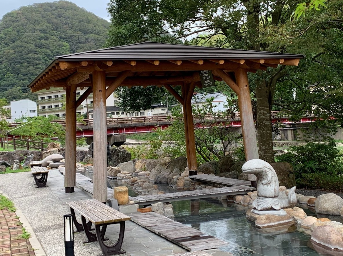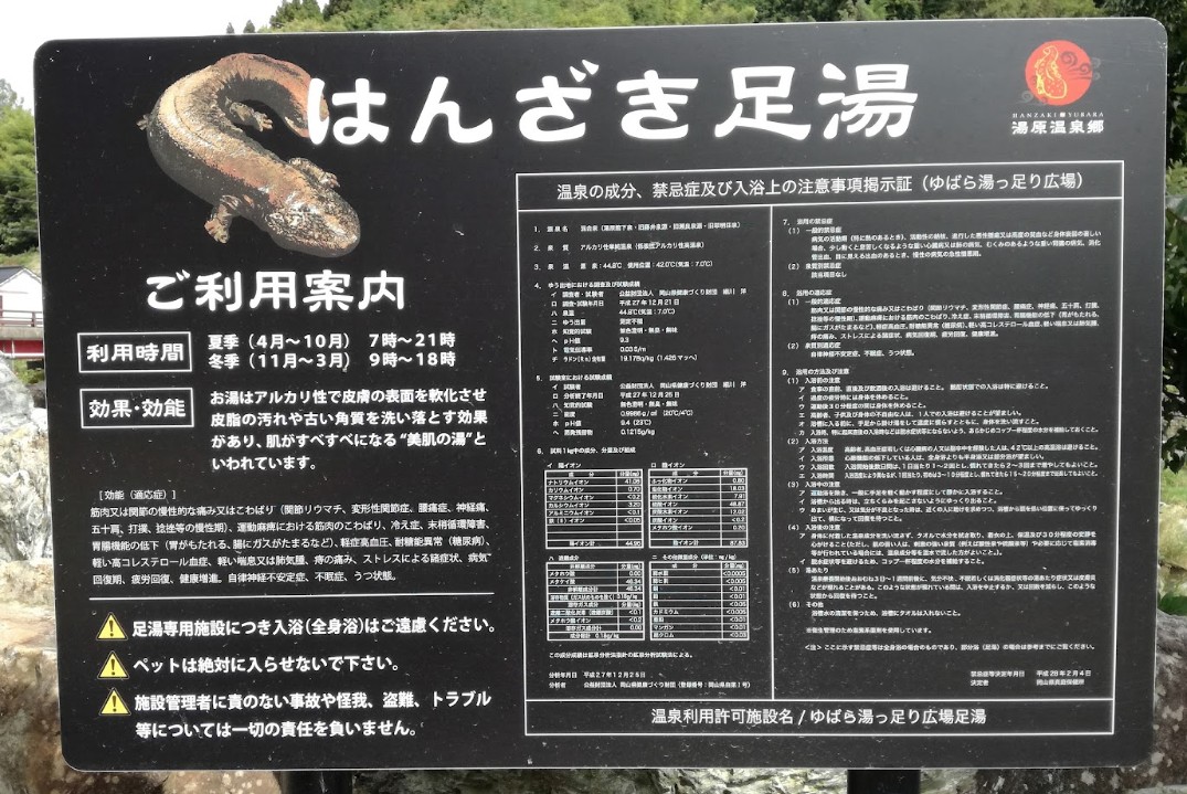 正式名称「真庭市オオサンショウウオ保護センター」通称「はんざきセンター」から程近い場所にある無料足湯。