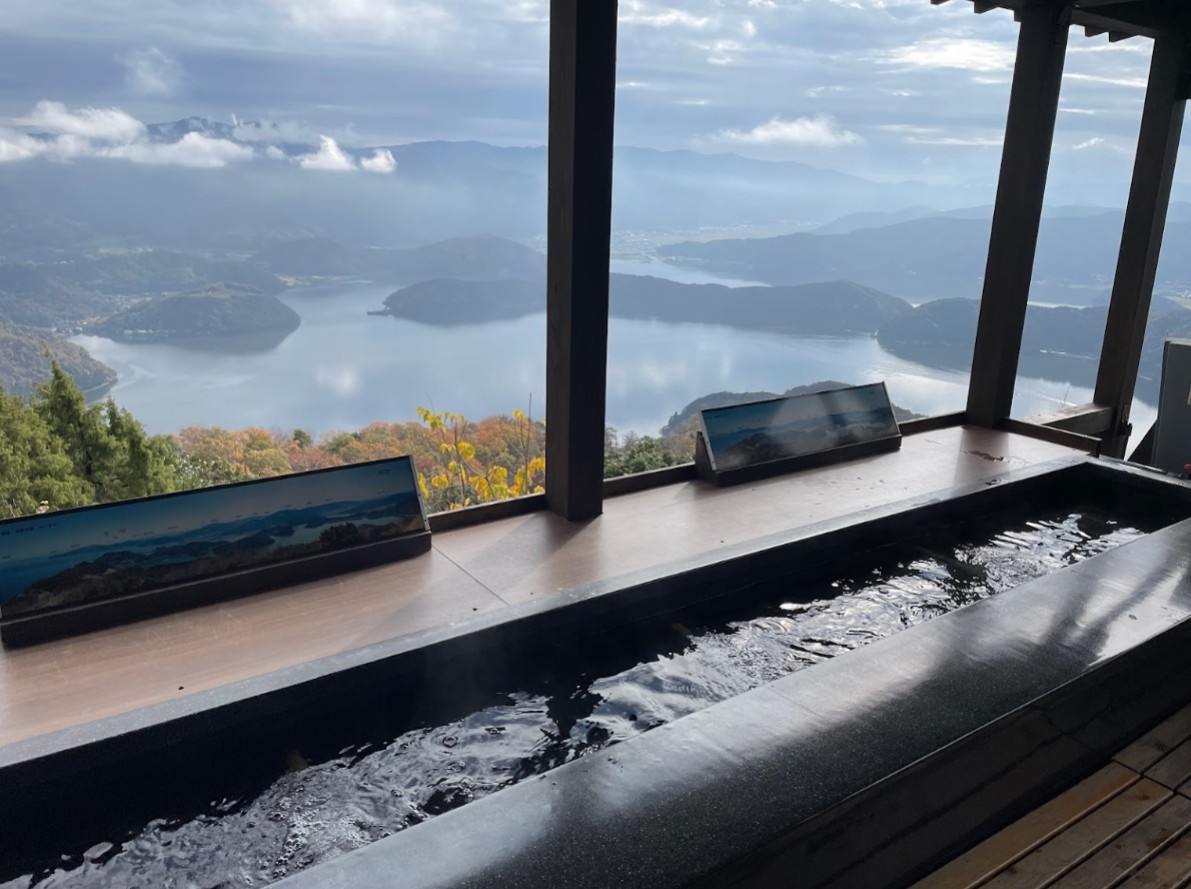 | [言い伝え・概要] | 若狭湾国定公園を代表する景勝地、レインボーラインには、三方五湖と連なる山々や大空を一望する各テラスが設けられ、「美浜テラス」にある無料足湯「天空の足湯」では三方五湖すべての湖と日本海が一度に楽しめる絶景スポットとなっている。