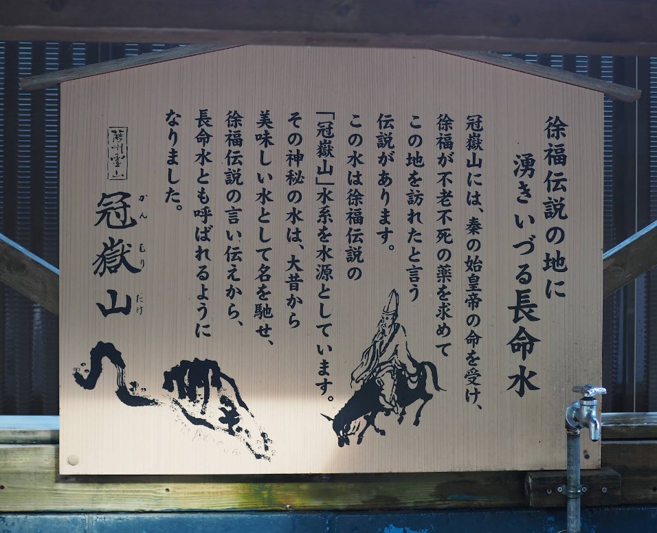 大昔より神秘の水として知られ、徐福伝説の言い伝えより長命水とも呼ばれている。 無料で提供され、蛇口数箇所で汲めるようになっている。 |