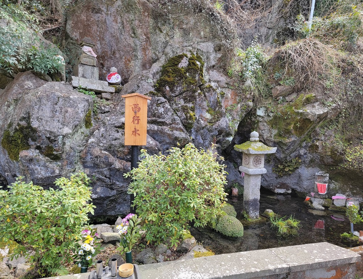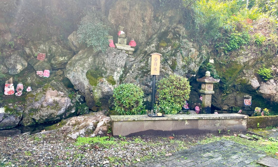 【西行水】(滋賀県の湧水)米原市醒井 西行法師の伝説が残る泡子塚そばにある 崖下の岩間から湧き出る水
