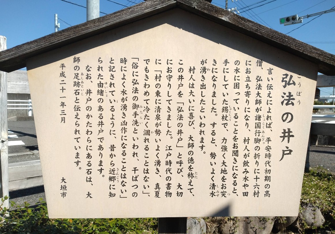 言い伝えによれば、平安時代初期の高僧、弘法大師が諸国行脚の折りに十六村にお立ちよりになり、村人が飲み水や田の水に困っていることをお聞きになると、手にしていた錫杖で、力強く大地をお突きになりました。すると勢いよく清水が湧き出したといわれています。 村人は大いに喜び、大師の徳を称えて、この井戸を「弘法の井戸」と呼び大切にお守りしてきました。「俗に弘法の御手洗ともいわれ干ばつの時によく水が湧き凶作になることはない」と記されているように、昔から近郷に知られた由緒ある井戸であります。 平成21年に整備された自噴井戸の広場。 東屋やベンチ、水路などが設置され周囲は策で囲まれ、 井戸は現在もポンプなしで自然に湧き出しています。 ◆PH値 7.2(弱アルカリ) |