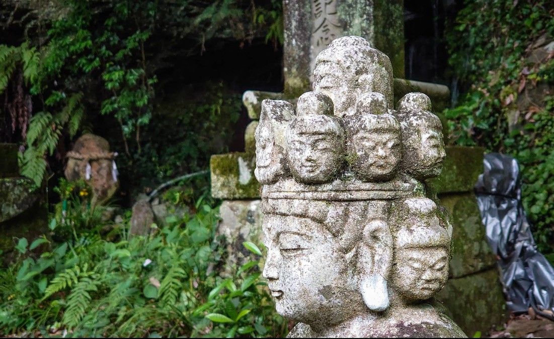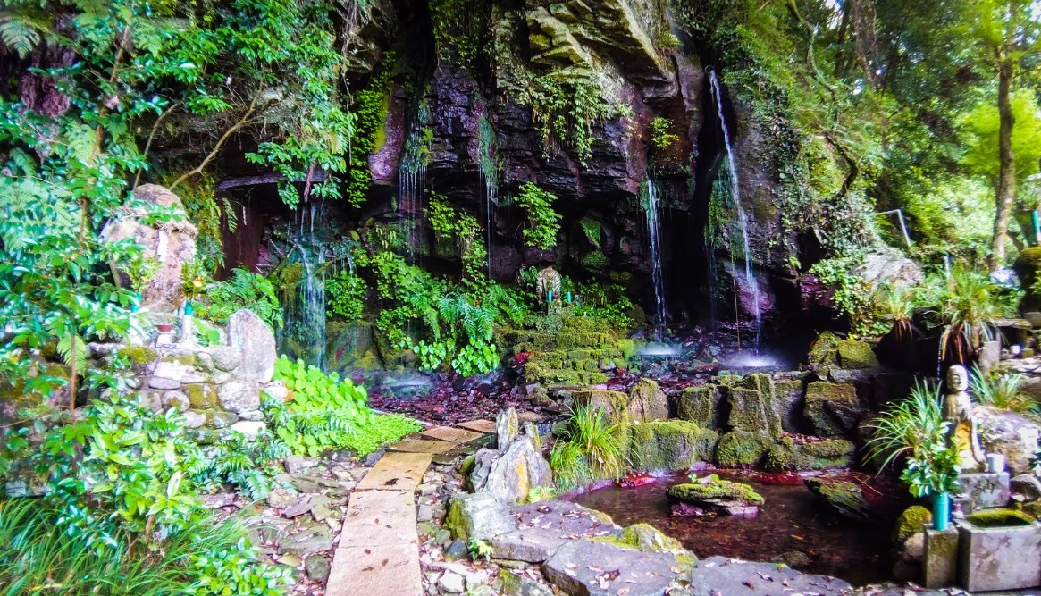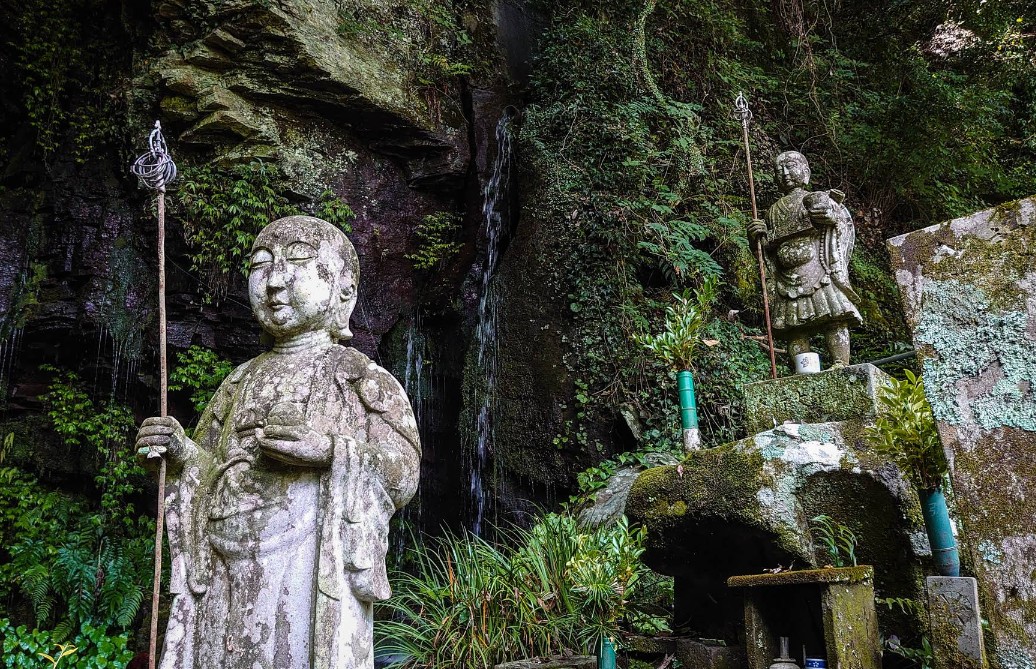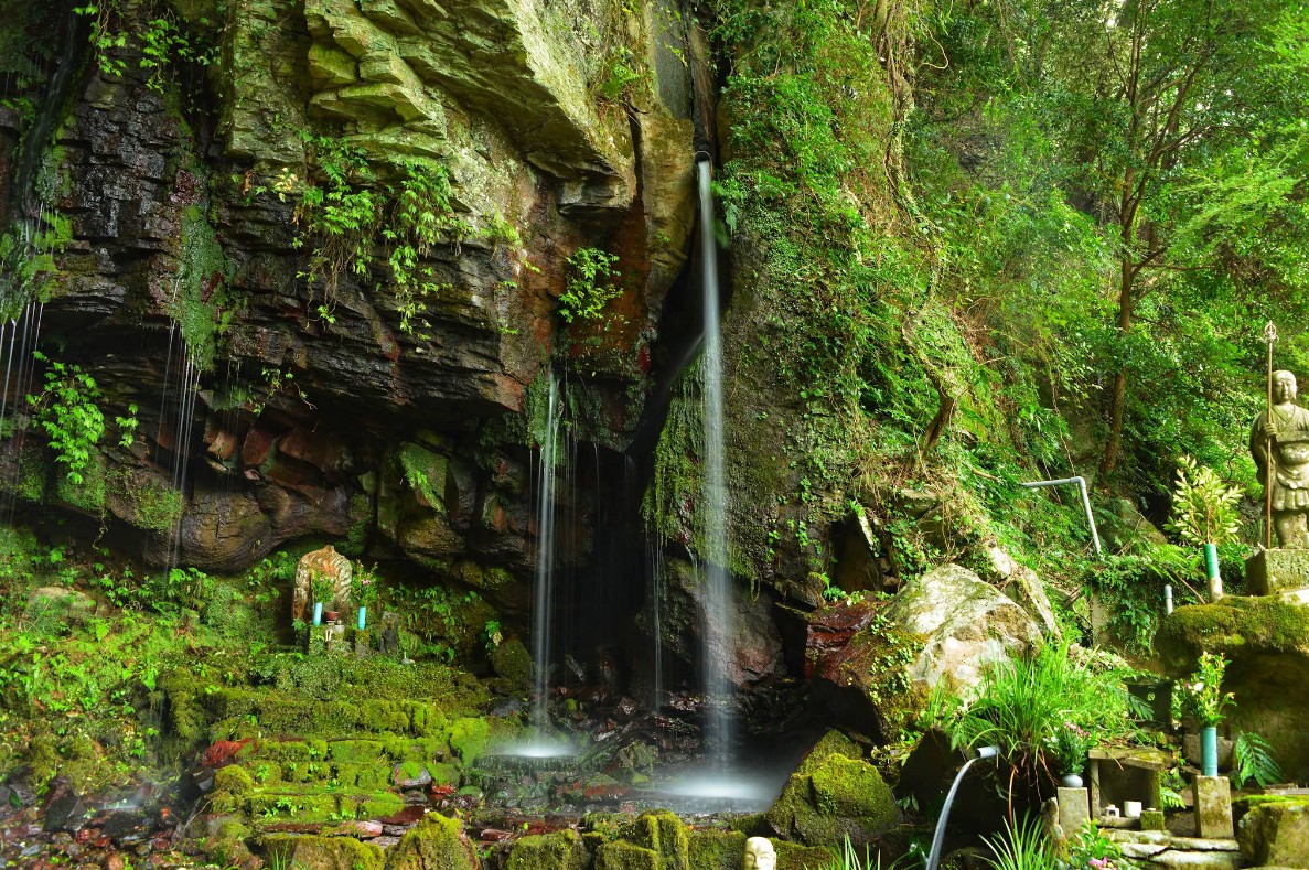 【御手水観音の磨崖仏群】(長崎県の水場)諫早市御手水町 夏の避暑地にもなり 山岳仏教の霊場にある巨大な岩場を流れる御手水