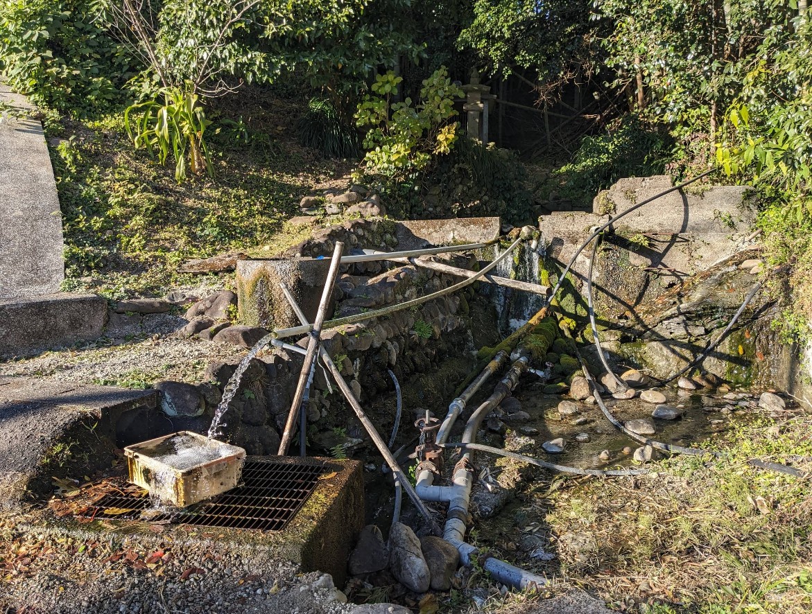 【浜んこの水】(宮崎県の湧水)東諸県郡綾町南俣 古城水神が祀られた林の中から湧き出る 古来から尊ばれる湧水
