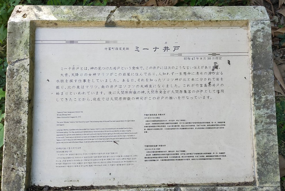 【ミーナ井戸】(沖縄県の水場)八重山郡竹富町竹富 大昔、女神マリツが見つけたという 竹富島の夫婦泉