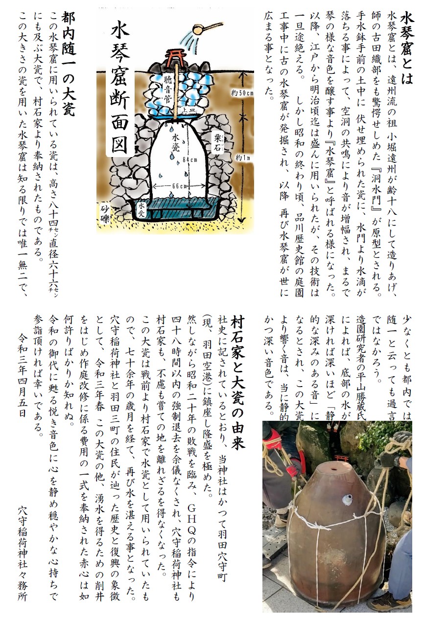 【穴守の御井戸】(東京都の水汲み場)大田区羽田5丁目 穴守稲荷神社境内にある 手漕ぎポンプ式 大田区災害時協力井戸 [名称] 穴守の御井戸 [場所] 東京都大田区羽田5丁目2−7 [言い伝え・概要] 穴守稲荷神社境内にある大田区災害時協力井戸。 手動ポンプ式で、「大きく五回くらい漕いで下さい」と注意書きされている。 また、井戸に隣接する水琴窟「東国一」は、都内髄一の大甕で作られており、静的な深みのある音色を聞くことができる。 [保全活動] [Google クチコミ] こちら お気に入りに追加※自然の湧水は煮沸して飲用されるとより安全です。※水辺は水難や危険生物に十分気を付けてください。 Click to share on X (新しいウィンドウで開きます) X このエントリーをLINEで送る (新しいウィンドウで開きます) LINEに送る Facebook で共有するにはクリックしてください (新しいウィンドウで開きます) Facebook このエントリーをはてなブックマークに追加 (新しいウィンドウで開きます) はてなブックマーク (種類)災害生活用水 | (場所)井戸 | (場所)水琴窟 関東 | 東京都 | 大田区 投稿日: 2025年4月12日2025年4月12日 投稿者: Sumai事務局