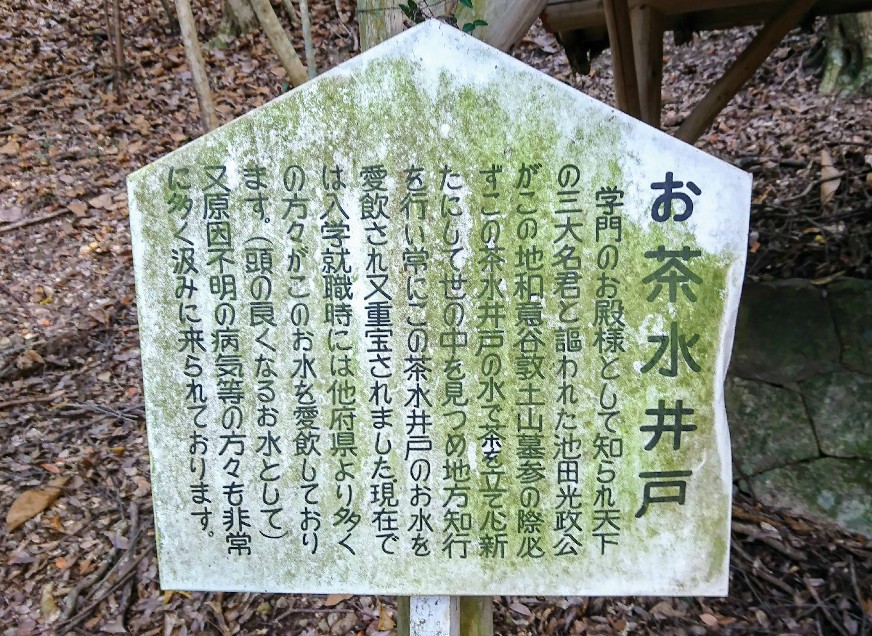 【お茶水井戸】(岡山県の水汲み場)備前市吉永町和意谷 学問の殿様・池田光政公が愛飲した 頭の良くなる水 [名称] お茶水井戸 [場所] 岡山県備前市吉永町和意谷64−4 [言い伝え・概要] 学問のお殿様として知られる播磨姫路藩第三代藩主・池田光政公が、 墓参の際に必ずこの井戸の水を愛飲していたといわれている。 現在では「頭の良くなる水」として知られ、他県から水汲みに訪れる人が多いという。 [保全活動] [Google クチコミ] こちら お気に入りに追加※自然の湧水は煮沸して飲用されるとより安全です。※水辺は水難や危険生物に十分気を付けてください。 Click to share on X (新しいウィンドウで開きます) X このエントリーをLINEで送る (新しいウィンドウで開きます) LINEに送る Facebook で共有するにはクリックしてください (新しいウィンドウで開きます) Facebook このエントリーをはてなブックマークに追加 (新しいウィンドウで開きます) はてなブックマーク (ご利益別)頭が良くなる | (場所)井戸 岡山県 | 備前市 | 中国 投稿日: 2025年5月1日2025年5月1日 投稿者: Sumai事務局