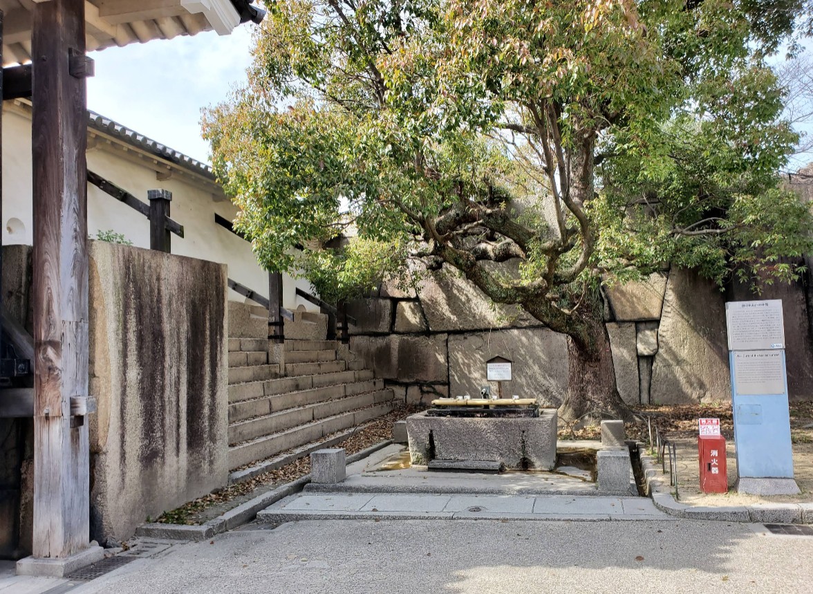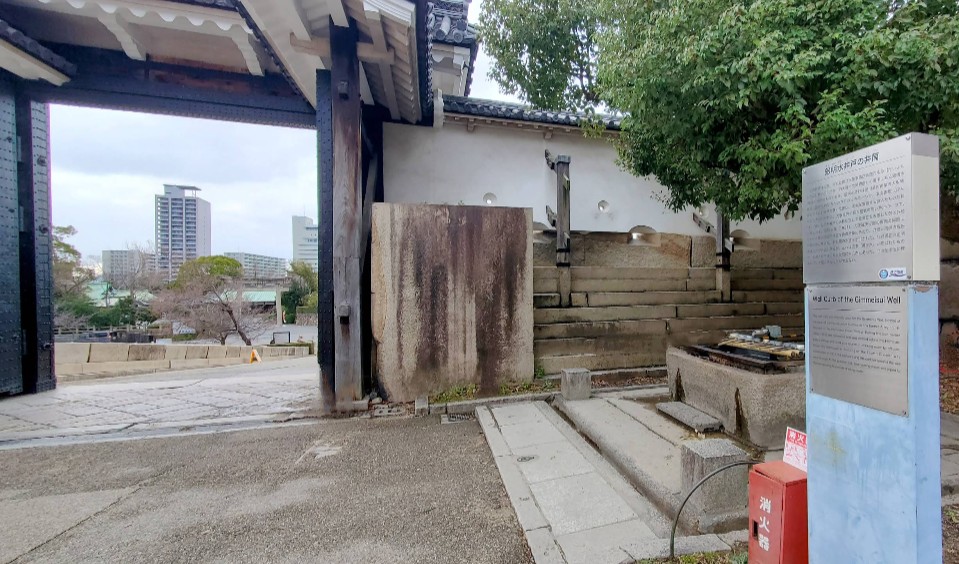 丁度、本丸御殿の台所の裏に位置し、本丸を警備する役人たちの飲料水として使われました。 現在もう一つある「金明水井戸」については、大阪城天守閣に入る丁度手前、小天守台にあります。入口の大砲の近くです。この金明水井戸は江戸時代からずっと存在しており、重要文化財に指定されています。 |