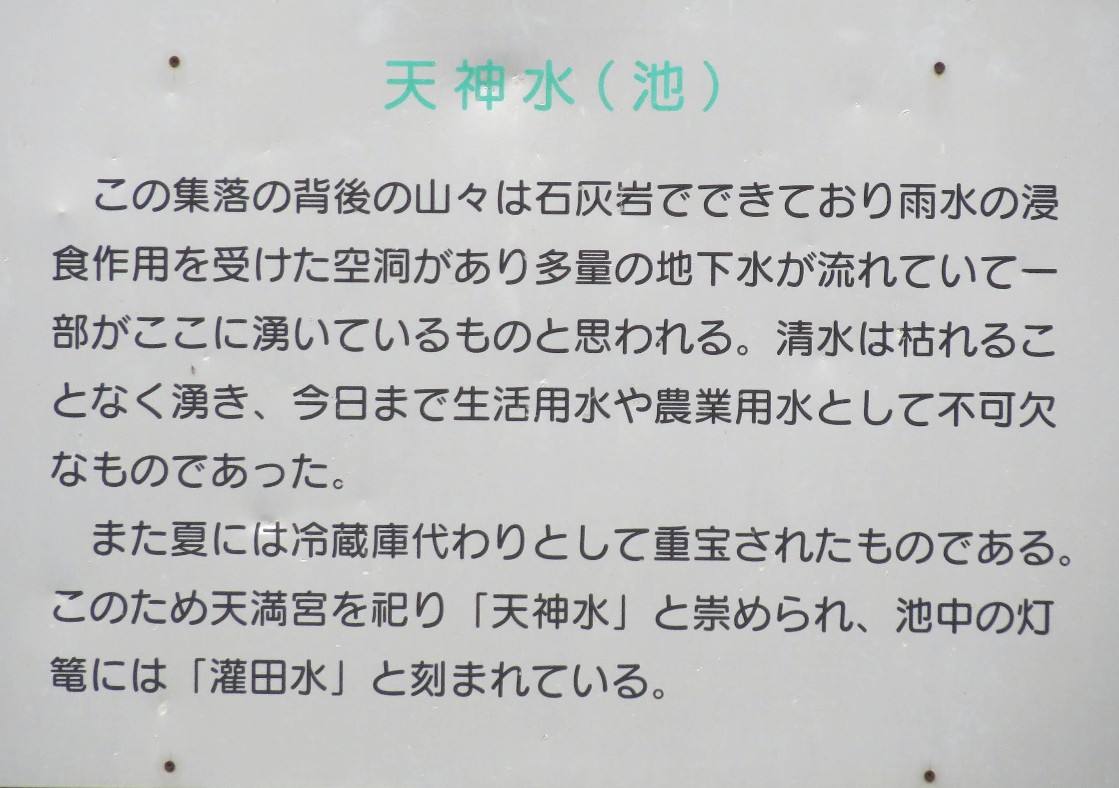 【天神水】(滋賀県の湧水)米原市枝折 ハリヨが生息する清らかな水を湛える 天満宮前の湧水池 [名称] 天神水 [場所] 滋賀県米原市枝折565 [言い伝え・概要] 枝折川の源流として知られている天神の水。 泉は山根から絶え間なく湧き出し、すき通った清水をたたえています。 泉のほとりには学問の神様で知られる菅原道真公が祭られ、信仰を集めています。 豊富な湧水量を誇り、幾すじかの川となって水田を潤しています。 [保全活動] [Google クチコミ] こちら 出典 公益社団法人びわこビジターズビューロー お気に入りに追加※自然の湧水は煮沸して飲用されるとより安全です。※水辺は水難や危険生物に十分気を付けてください。 Click to share on X (新しいウィンドウで開きます) X このエントリーをLINEで送る (新しいウィンドウで開きます) LINEに送る Facebook で共有するにはクリックしてください (新しいウィンドウで開きます) Facebook このエントリーをはてなブックマークに追加 (新しいウィンドウで開きます) はてなブックマーク (自然)ハリヨ 滋賀県 | 近畿 | 米原市 投稿日: 2025年7月22日 投稿者: Sumai事務局