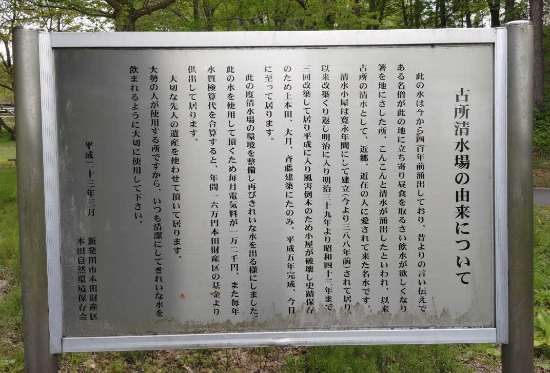 【古所の清水】(新潟県の水汲み場)新発田市本田癸 四百年前、名僧の箸によって湧出したと伝わる 東屋の下の名水