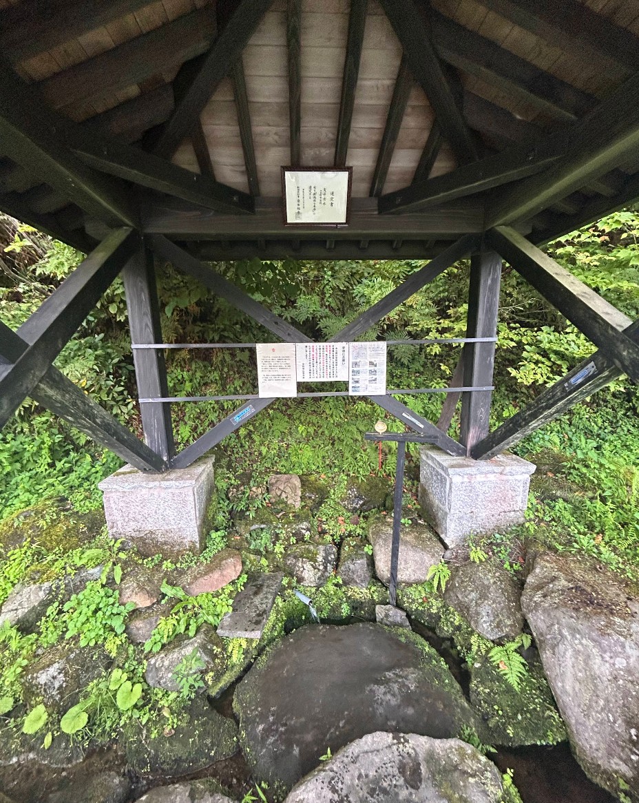 【実昇清水】(新潟県の湧水)十日町市室野 「城の池」の水車を回し続けている 城川ダム近くに整備された名水