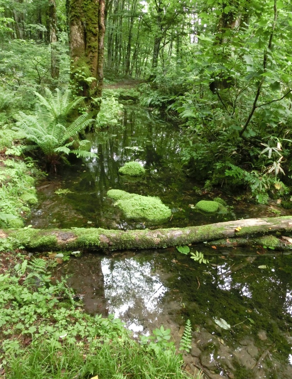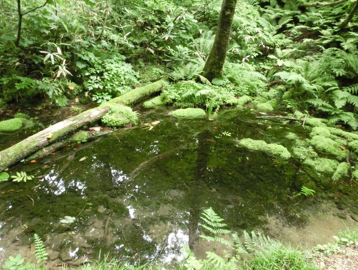 | [言い伝え・概要] | 真室川町の鏡沢地区の北、前森山林道の車止め付近のブナ林の中にある。甑山からの伏流水が湧き出て池になっており、毎分約500L以上もの清水が底から湧いている。真室川の源流の一つである。