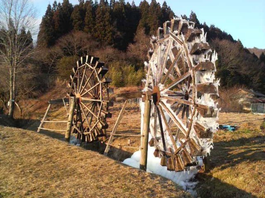 【凍りつく水車】(宮城県の水場)登米市東和町米谷相川 冬場には芸術的なつららを纏う 農家民宿近くの二連水車 [名称] 凍りつく水車 [場所] 宮城県登米市東和町米谷相川 [言い伝え・概要] マタギ料理や宿泊もできる農家民宿かじか村の近く、北東側の大関川沿いにある二連水車。 冬場には回りながら凍り付いたと思われる不思議な形をしたつららを纏った水車を眺めることができる。 [保全活動] [Google クチコミ] こちら 出典 農家民宿かじか村 お気に入りに追加※自然の湧水は煮沸して飲用されるとより安全です。※水辺は水難や危険生物に十分気を付けてください。 Click to share on X (新しいウィンドウで開きます) X このエントリーをLINEで送る (新しいウィンドウで開きます) LINEに送る Facebook で共有するにはクリックしてください (新しいウィンドウで開きます) Facebook このエントリーをはてなブックマークに追加 (新しいウィンドウで開きます) はてなブックマーク (場所)水車 東北 | 宮城県 | 登米市 投稿日: 2025年8月17日 投稿者: Sumai事務局