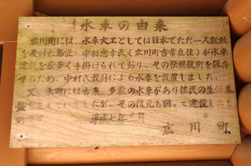 【ゴットン水車館】(福岡県の水場)八女郡広川町水原 ログハウスの傍らでゆっくり音を立てて回る 直径7mの米つき水車