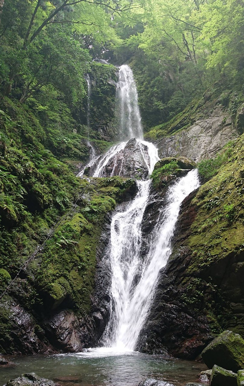 | [言い伝え・概要] | 左に雄滝27m・右に雌滝45mの二つの流れを持ち夫婦滝となっている雨乞の滝。