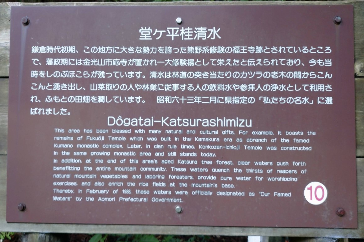 【堂ヶ平桂清水】(青森県の湧水)弘前市大沢 堂ケ平 かつて一大修験場だった山の上 桂の老木の根本から滾々と湧き出る清水 [名称] 堂ヶ平桂清水 [場所] 青森県弘前市大沢 堂ケ平 [言い伝え・概要] 鎌倉時代初期に、この地方に大きな勢力を誇った熊野系修験の福王寺跡といわれている場所で、桂の老木の間からこんこんと湧き出している。 [保全活動] 市による年5回の水質検査および地元町会による清掃活動を実施。 [Google クチコミ] こちら 出典 環境省 お気に入りに追加※自然の湧水は煮沸して飲用されるとより安全です。※水辺は水難や危険生物に十分気を付けてください。 Click to share on X (新しいウィンドウで開きます) X このエントリーをLINEで送る (新しいウィンドウで開きます) LINEに送る Facebook で共有するにはクリックしてください (新しいウィンドウで開きます) Facebook このエントリーをはてなブックマークに追加 (新しいウィンドウで開きます) はてなブックマーク (パワースポット)修験道 東北 | 青森県 | 弘前市 投稿日: 2025年9月18日2025年9月18日 投稿者: Sumai事務局