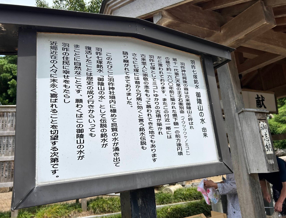 羽咋神社境内で湧き出る、極めて良質な羽咋七塚銘水。 昔から万病に効くという伝説もある。