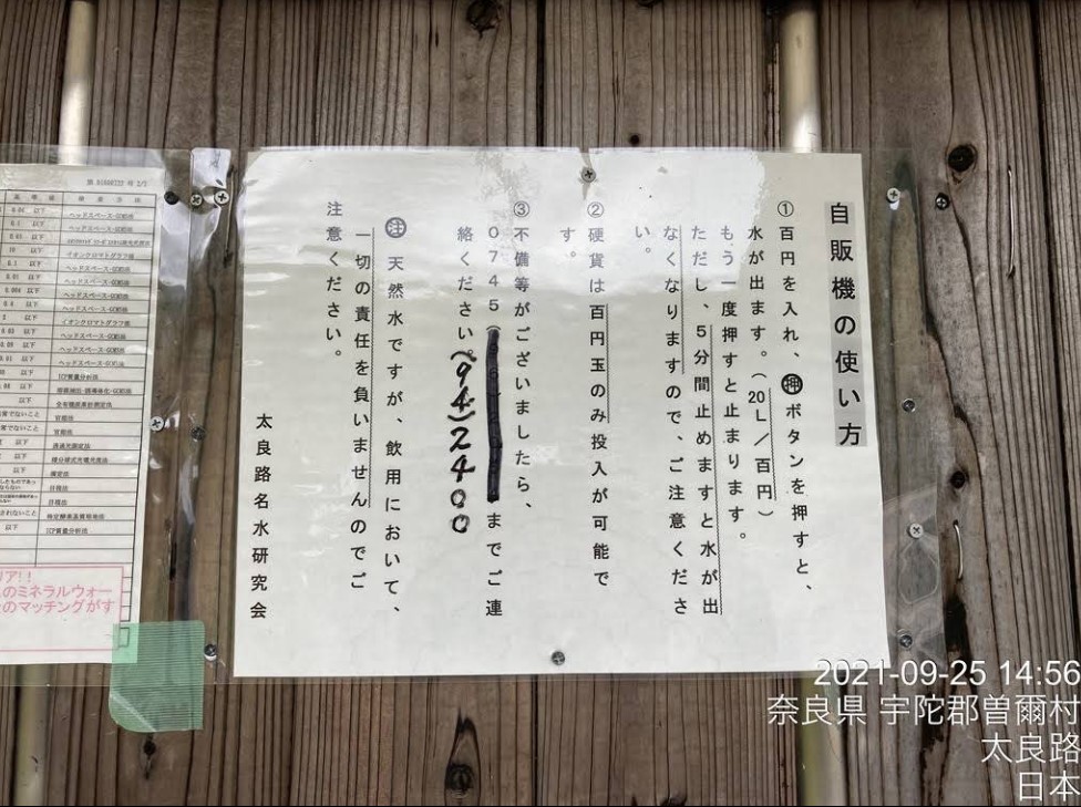 【曽爾高原の水販売所】(奈良県の水汲み場)宇陀郡曽爾村太良路 曽爾高原湧水群の名水販売所 20リットル100円・超軟水ミネラルウォーター