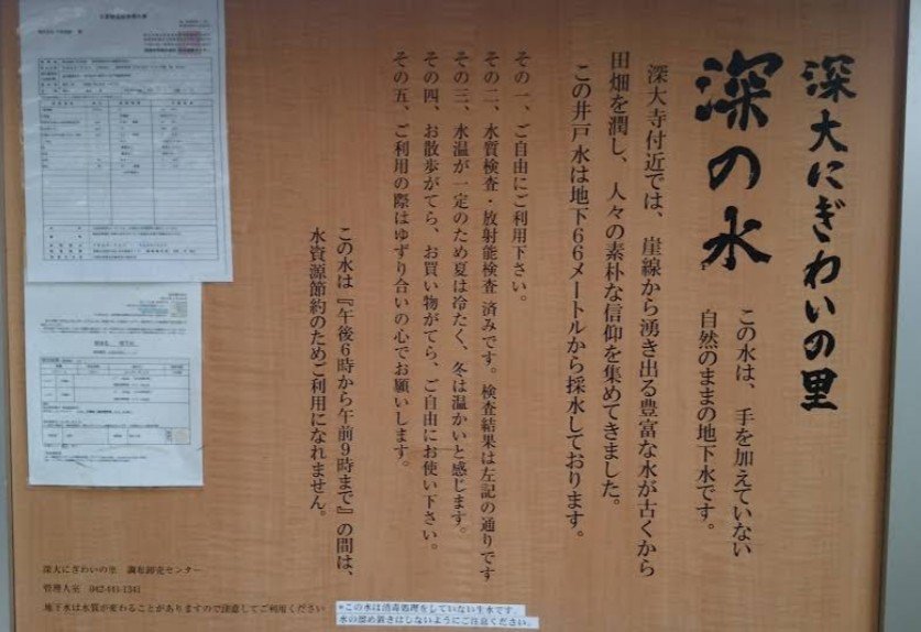 【深の水】(東京都の水汲み場)調布市深大寺元町 昔から田畑を潤してきた 崖線から湧き出る自然のままの地下水
