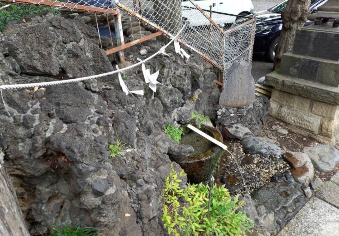 【中目黒八幡神社の神水】(東京都の湧水)目黒区中目黒 参道階段手前にも引かれている 地元の人々に尊ばれる境内の神泉