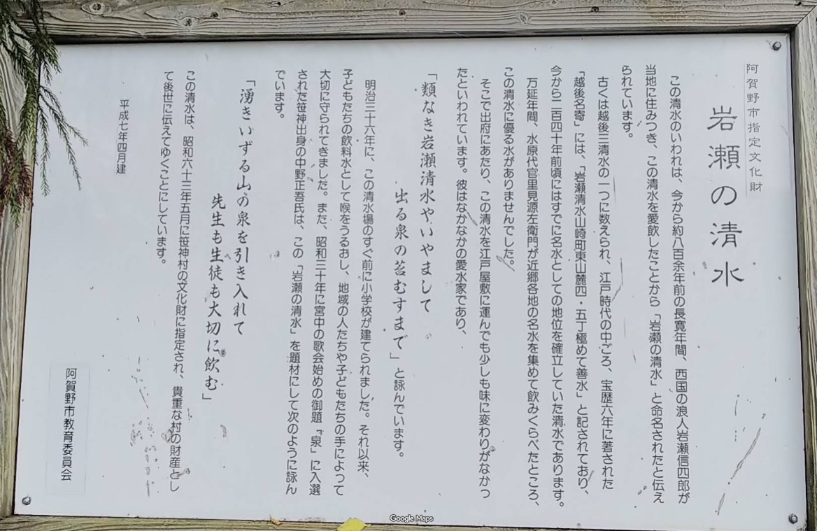 【岩瀬の清水】(新潟県の水汲み場)阿賀野市山崎 新潟の名水百選 越後の三清水と称えられる東屋の水汲み場 [名称] 岩瀬の清水 [場所] 新潟県阿賀野市山崎1443−1 [言い伝え・概要] 古来越後三清水の一つとして有名であり、現在は「新潟の名水百選」となっている。 岩瀬の名の由来は、平安後期西国の浪人岩瀬信四郎がこの地に住み着き、この清水を愛飲したことから命名されたと伝えられている。 [保全活動] [Google クチコミ] こちら 出典 阿賀野市 お気に入りに追加※自然の湧水は煮沸して飲用されるとより安全です。※水辺は水難や危険生物に十分気を付けてください。 Click to share on X (新しいウィンドウで開きます) X このエントリーをLINEで送る (新しいウィンドウで開きます) LINEに送る Facebook で共有するにはクリックしてください (新しいウィンドウで開きます) Facebook このエントリーをはてなブックマークに追加 (新しいウィンドウで開きます) はてなブックマーク 新潟県 | 中部 | 阿賀野市 投稿日: 2025年10月7日 投稿者: Sumai事務局