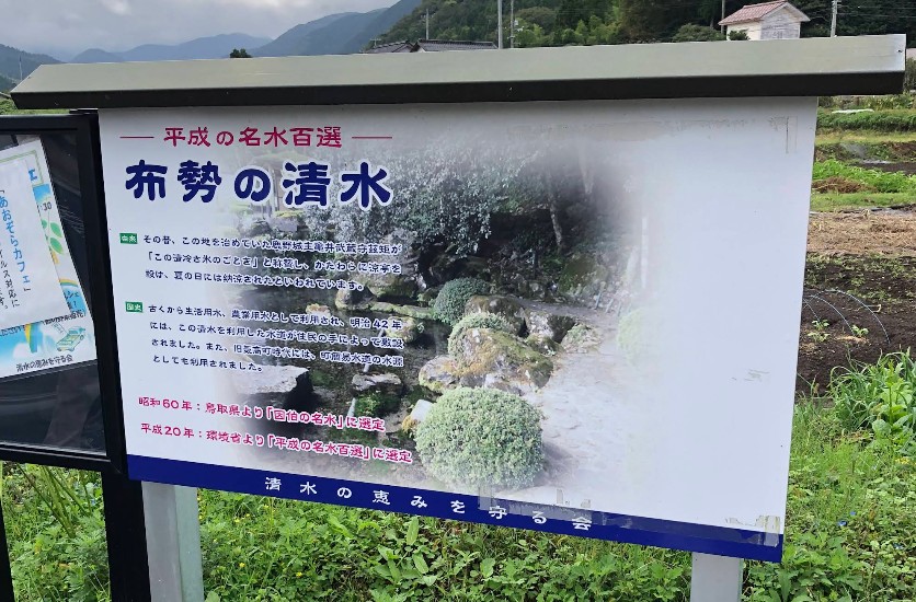 1909年にはこの清水を利用して町内でも初めての水道が住民の手によって敷設されるなど、古くから地域の暮らしに密着し、さらに環境省の「水・土壌環境保全活動功労者表彰」を受賞するなど、地域住民による保全活動も長い歴史を持っています。 近くの県道沿いに数カ所水汲み場が設けられており、誰でも手軽に名水を汲むことができます。 昭和60年:鳥取県より「因伯の名水」に選定 平成20年:環境省より「平成の名水百選」に選定 |