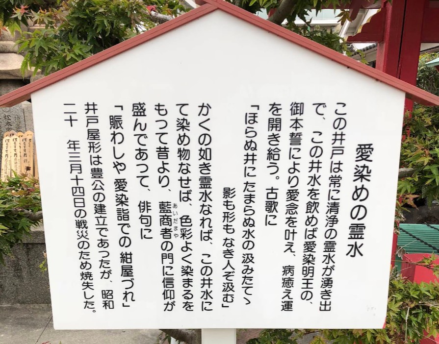【愛染めの霊水】(大阪府の湧水)大阪市天王寺区夕陽丘町 聖徳太子ゆかりの愛染堂にある 飲むと愛が叶うという霊水 [名称] 愛染めの霊水 [場所] 大阪府大阪市天王寺区夕陽丘町5−36 [言い伝え・概要] 勝鬘院・愛染堂の境内にある霊水。 飲むと愛が叶うといわれ、女性参詣客が毎年たくさん訪れる。 初夏に行われる愛染祭りは、593年に聖徳太子が開いた日本最古の夏祭りとして知られ、住吉大社、天神祭に並び、大阪3大夏祭りの一つで、浪速に夏の訪れを告げる風物詩となっている。 [保全活動] [Google クチコミ] こちら 出典 西国愛染十七霊場 お気に入りに追加※自然の湧水は煮沸して飲用されるとより安全です。※水辺は水難や危険生物に十分気を付けてください。 Click to share on X (新しいウィンドウで開きます) X このエントリーをLINEで送る (新しいウィンドウで開きます) LINEに送る Facebook で共有するにはクリックしてください (新しいウィンドウで開きます) Facebook このエントリーをはてなブックマークに追加 (新しいウィンドウで開きます) はてなブックマーク (ご利益別)恋愛成就 | (人物)聖徳太子 大阪府 | 近畿 | 大阪市 投稿日: 2025年10月17日2025年10月17日 投稿者: Sumai事務局