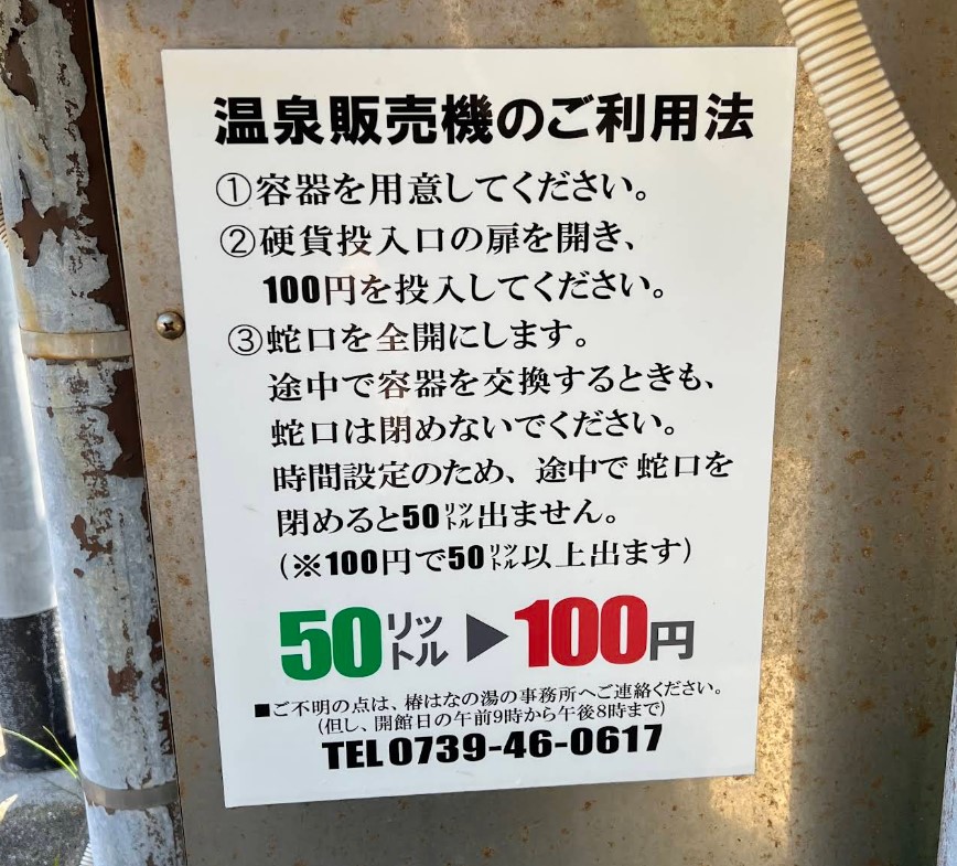 | [名称] | 温泉販売機(道の駅 椿はなの湯) |