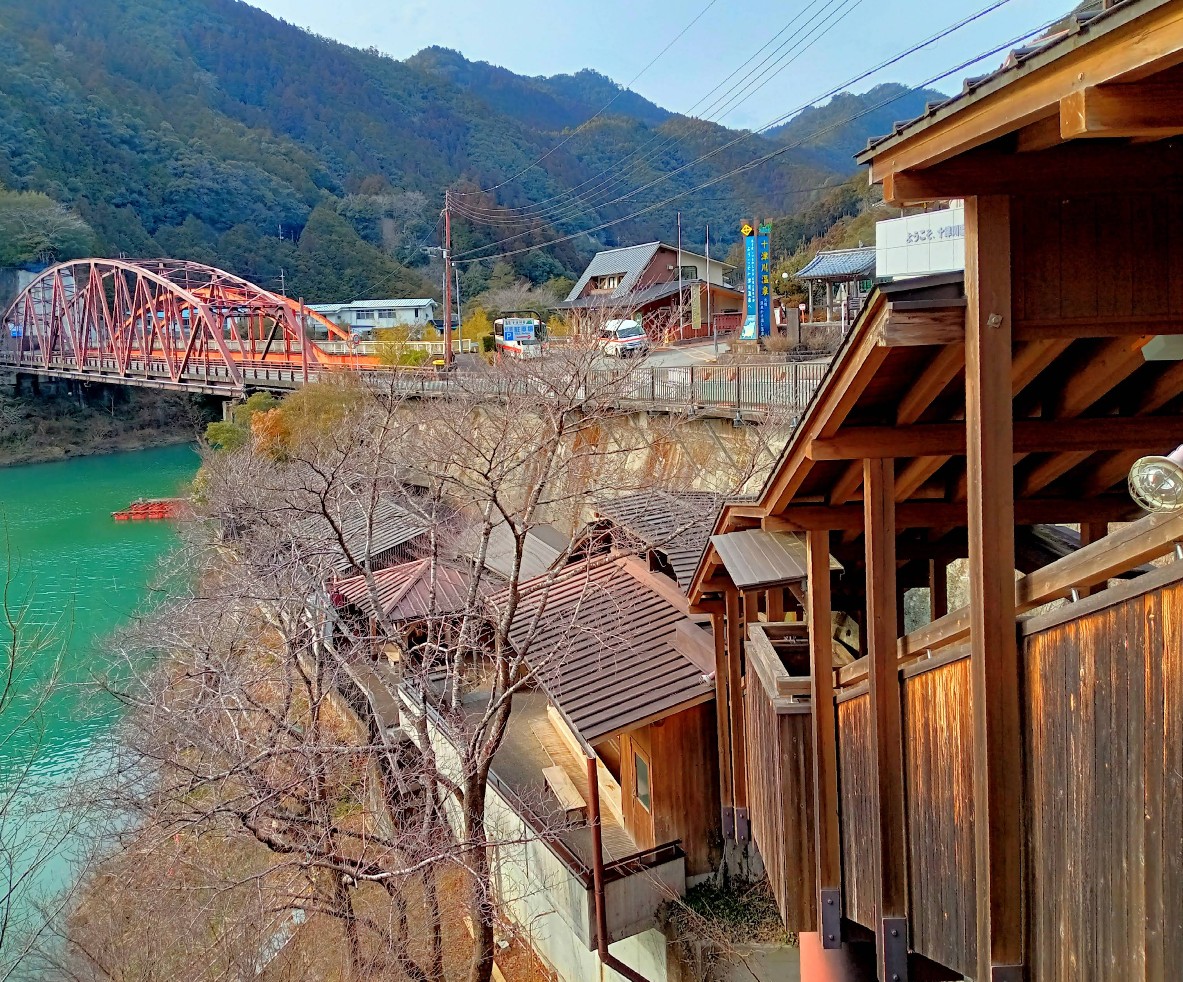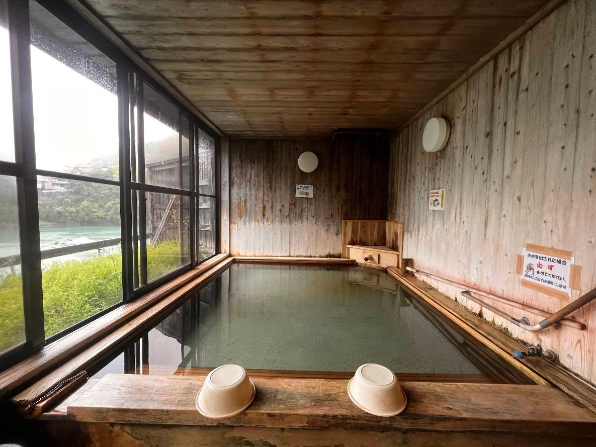 【十津川温泉 庵の湯 足湯・飲泉所】(奈良県の水場)吉野郡十津川村平谷 きり傷、やけど、神経痛、糖尿病に効く 二津野ダム湖を展望する日帰り温泉施設
