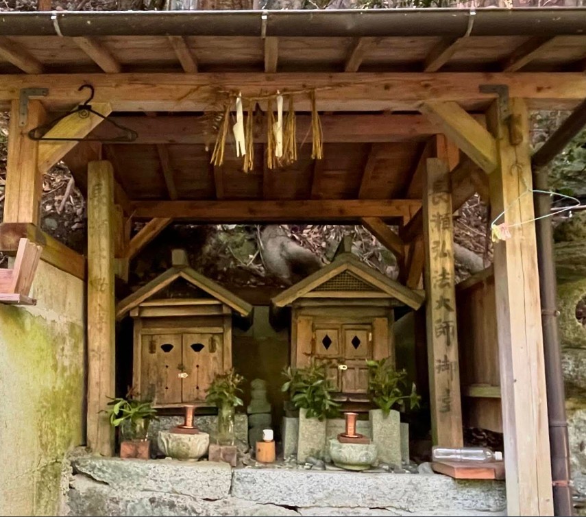 【弘法大師の水】(三重県の水汲み場)松阪市飯南町上仁柿 弘法大師の祠近く 洞門の端に設置された円柱型の給水施設 [名称] 弘法大師の水 [場所] 三重県松阪市飯南町上仁柿3402 [言い伝え・概要] 伊勢本街道沿いで、弘法大師の祠と長瀬不動尊の祠の近くにある水汲み場。 前に車を止めるスペースが無く、 洞門の中や川側に車を止めない事と、 駐車は山側の上り方向で、ハザードランプを点けるように注意書きがある。 [保全活動] [Google クチコミ] こちら お気に入りに追加※自然の湧水は煮沸して飲用されるとより安全です。※水辺は水難や危険生物に十分気を付けてください。 Click to share on X (新しいウィンドウで開きます) X このエントリーをLINEで送る (新しいウィンドウで開きます) LINEに送る Facebook で共有するにはクリックしてください (新しいウィンドウで開きます) Facebook このエントリーをはてなブックマークに追加 (新しいウィンドウで開きます) はてなブックマーク (人物)弘法大師 三重県 | 近畿 | 松阪市 投稿日: 2025年11月10日2025年11月10日 投稿者: Sumai事務局