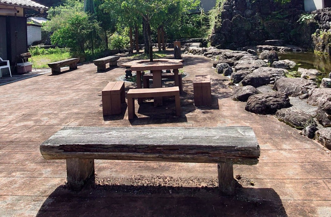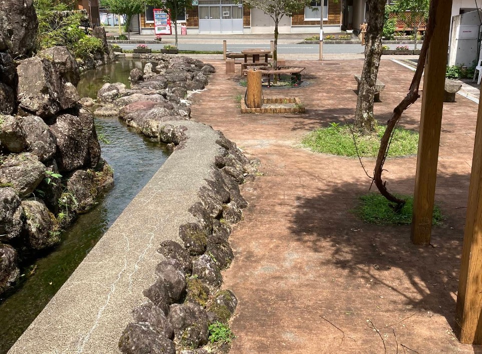 【ゆすはらまちの水場】(高知県の水場)高岡郡梼原町梼原 曲がりくねった水路・ベンチ・水飲み場がある 国道沿いの親水公園