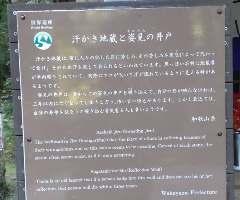 【姿見の井戸】(和歌山県の水場)伊都郡高野町高野山 こうや七不思議のひとつ 汗かき地蔵の右手にある 怖い言い伝えが残る井戸 [名称] 姿見の井戸 [場所] 和歌山県伊都郡高野町高野山 [言い伝え・概要] こうや七不思議のひとつ 奥之院の参道、中の橋の橋詰に汗かき地蔵をお祀りしているお堂があります。 このお堂の右側にある小さな井戸は、姿見の井戸と呼ばれています。 この井戸をのぞきこんで、自分の顔が映らないと三年以内に死んでしまうといわれているそうです。 [保全活動] [Google クチコミ] こちら 出典 高野町 お気に入りに追加※自然の湧水は煮沸して飲用されるとより安全です。※水辺は水難や危険生物に十分気を付けてください。 Click to share on X (新しいウィンドウで開きます) X このエントリーをLINEで送る (新しいウィンドウで開きます) LINEに送る Facebook で共有するにはクリックしてください (新しいウィンドウで開きます) Facebook このエントリーをはてなブックマークに追加 (新しいウィンドウで開きます) はてなブックマーク (場所)井戸 伊都郡 | 高野町 | 近畿 | 和歌山県 投稿日: 2025年11月20日 投稿者: Sumai事務局
