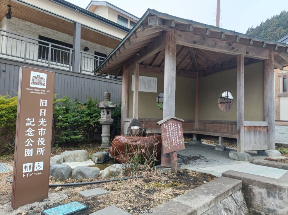 [言い伝え・概要] 旧日光市役所のレトロな建物手前の記念公園にある水汲み場。