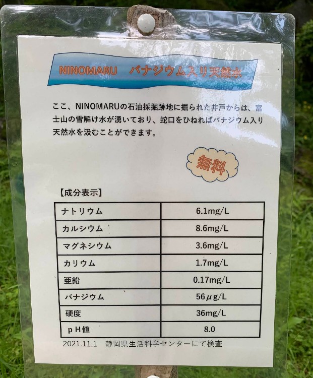 【富士山の雪解け水】(静岡県の水汲み場)富士市大淵 富士山麓の玄武岩層から湧き出る バナジウム入り軟水 [名称] 富士山の雪解け水 [場所] 静岡県富士市大淵4632−5 [言い伝え・概要] MINOMARUの石油採掘跡地に掘られた井戸から湧き出る水。 蛇口をひねれば富士山麓の玄武岩層から湧き出た無料の天然水を汲むことができる。 バナジウム豊富で、血糖値調整やダイエットに効くとされている。 硬度 36mg/L 料金 無料 [保全活動] [Google クチコミ] こちら お気に入りに追加※自然の湧水は煮沸して飲用されるとより安全です。※水辺は水難や危険生物に十分気を付けてください。 Share on X (新しいウィンドウで開きます) X このエントリーをLINEで送る (新しいウィンドウで開きます) LINEに送る Share on Facebook (新しいウィンドウで開きます) Facebook このエントリーをはてなブックマークに追加 (新しいウィンドウで開きます) はてなブックマーク (種類)バナジウム | (種類)軟水 富士市 | 山梨県 | 中部 投稿日: 2025年12月22日2025年12月22日 投稿者: Sumai事務局