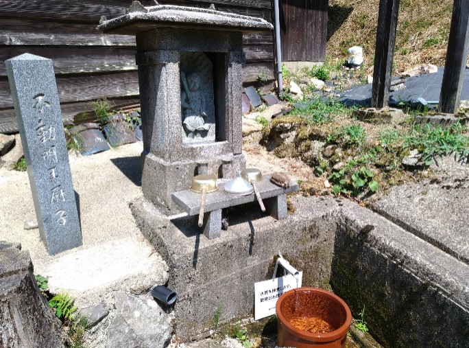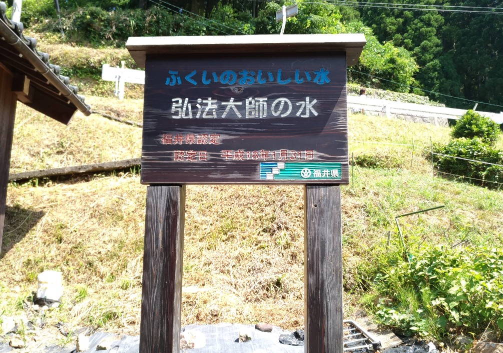 「弘法さんが治してくれる」と願いながら飲むと病気や怪我が治るという言い伝えがあります。 水量は多くありませんが、安定的に湧いている水です。 弘法大師の水のすぐ隣には弘法大師をお祀りしたお堂があり、隣接した住民が、代々受け継がれてきた教えとして、お掃除やお堂の管理をしています。 ※福井県安全環境部環境政策課発行「ふくいのおいしい水」より抜粋 |
