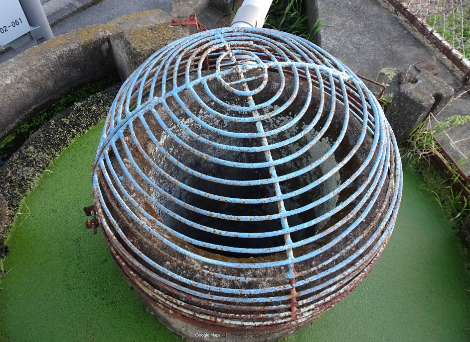 【名古曽の円筒分水】(和歌山県の水場)橋本市高野口町名古曽 各方面に水路を分配するドーム型分水工 機能的で美しい農業土木遺産