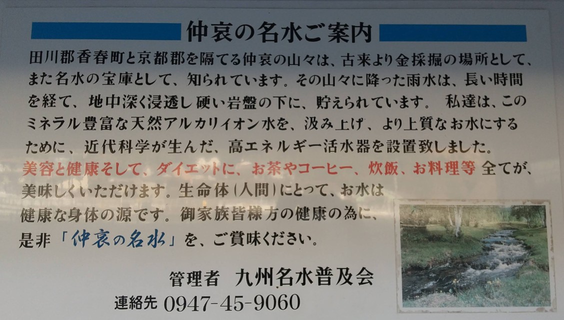 【仲哀の名水 】(福岡県の水汲み場)田川郡香春町鏡山 仲哀の山々の岩盤に蓄えられた ミネラル豊富な天然アルカリイオン水